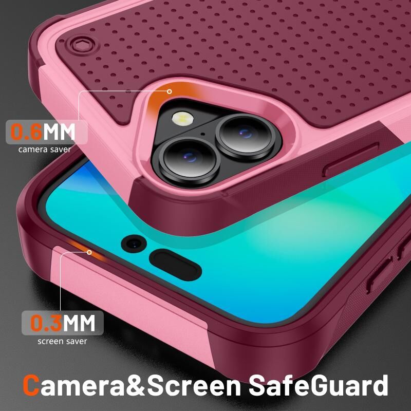 Θήκη προστασίας κινητού τηλεφώνου για iPhone 16 Plus από PC + TPU, ανθεκτική σε κρούσεις (Ροζ+Σκούρο Κόκκινο)