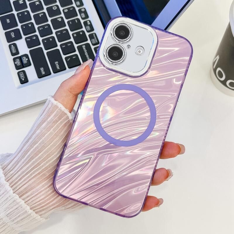 Θήκη τηλεφώνου TPU με επιμετάλλωση και υφή για iPhone 16 Plus με MagSafe και προστατευτική μεμβράνη φακού με γκλίτερ (Λευκά Κύματα Νερού)