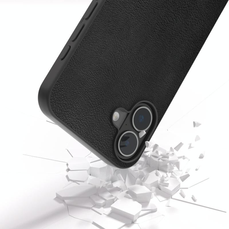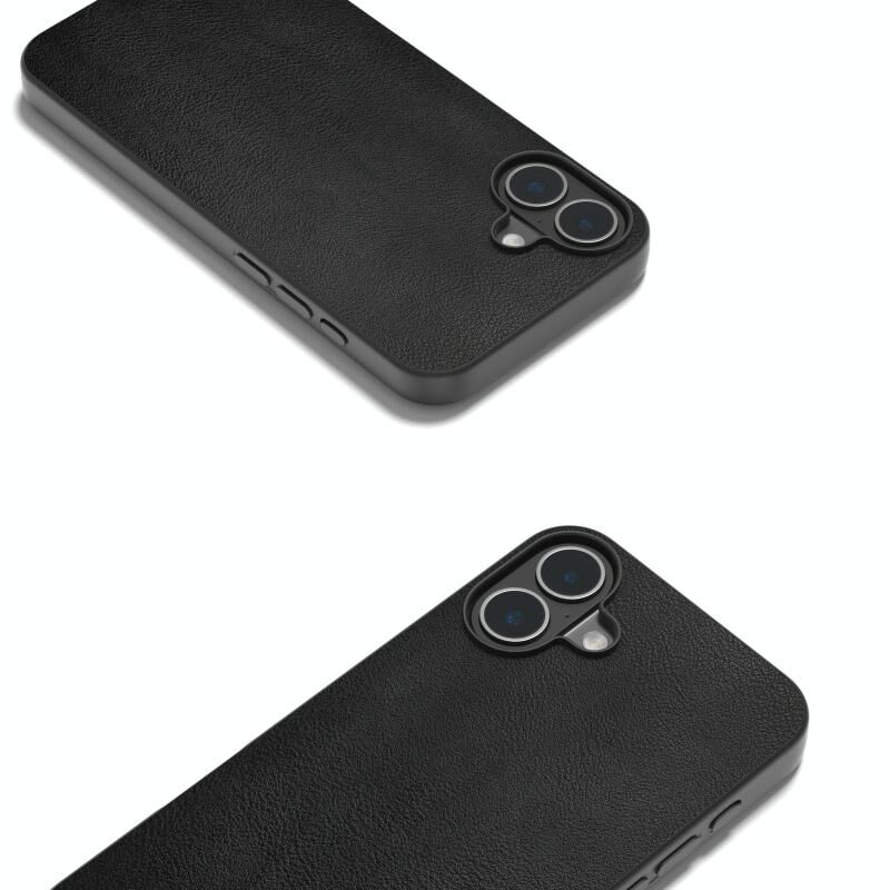 Θήκη τηλεφώνου για iPhone 16 Plus από δερματίνη PU, μαύρο πλαίσιο, πλήρης κάλυψη (Πορτοκαλί)