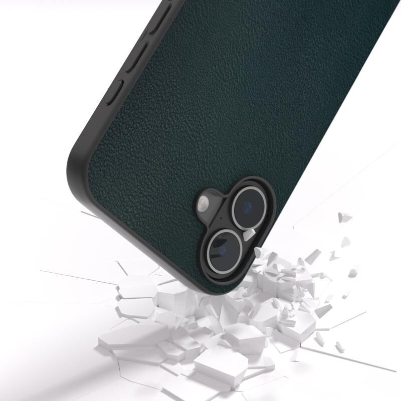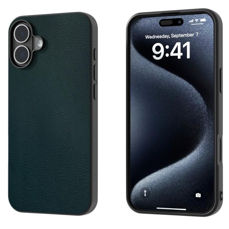 Θήκη τηλεφώνου για iPhone 16 Plus από δερματίνη PU, μαύρο πλαίσιο, πλήρης κάλυψη (Πορτοκαλί)