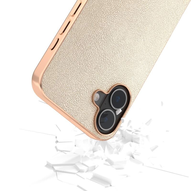 Θήκη τηλεφώνου πλήρους κάλυψης για iPhone 16 Plus, από δερματίνη PU με ηλεκτρολυτικό πλαίσιο (Χρυσός)