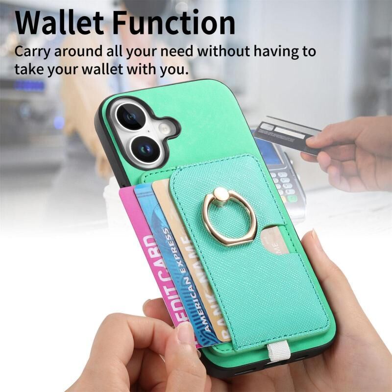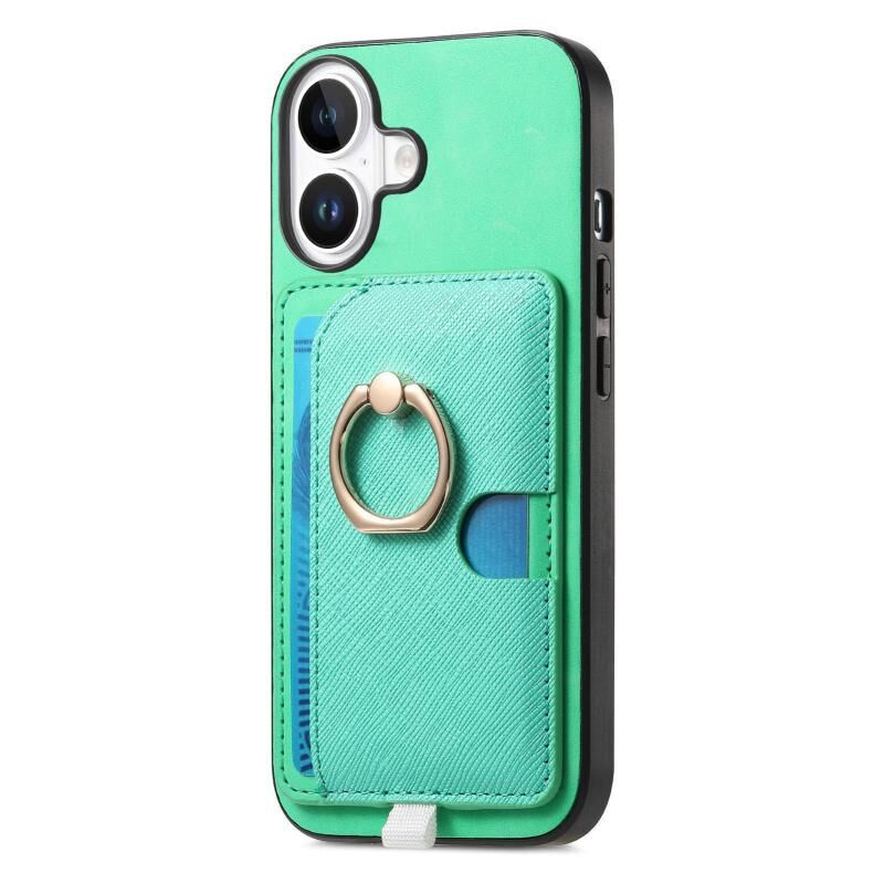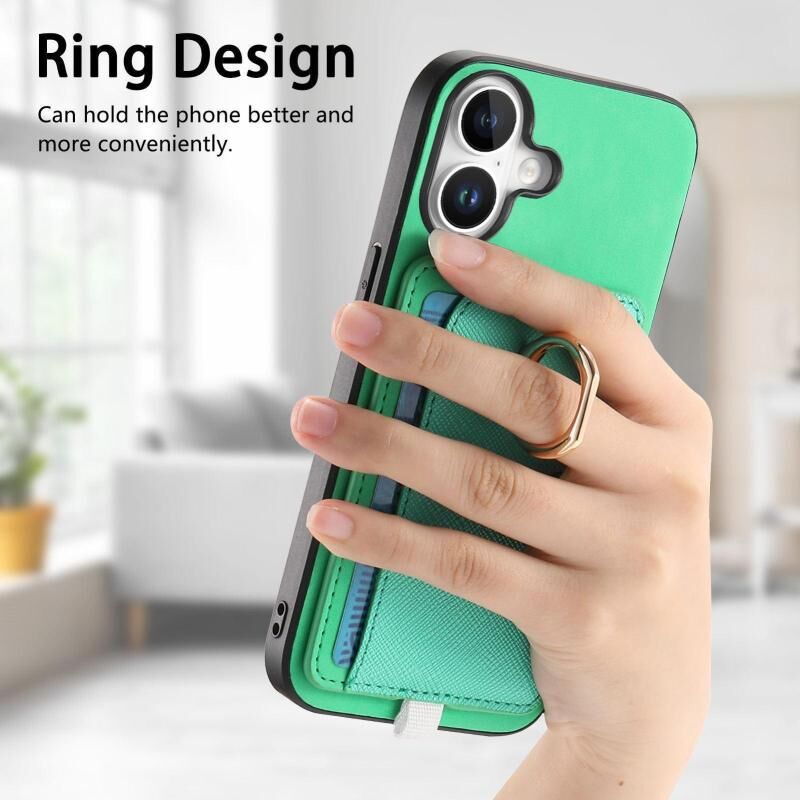 For iPhone 16 Plus Retro Cross Leather Ring Side Insert Card Bag MagSafe Phone Case(Green)