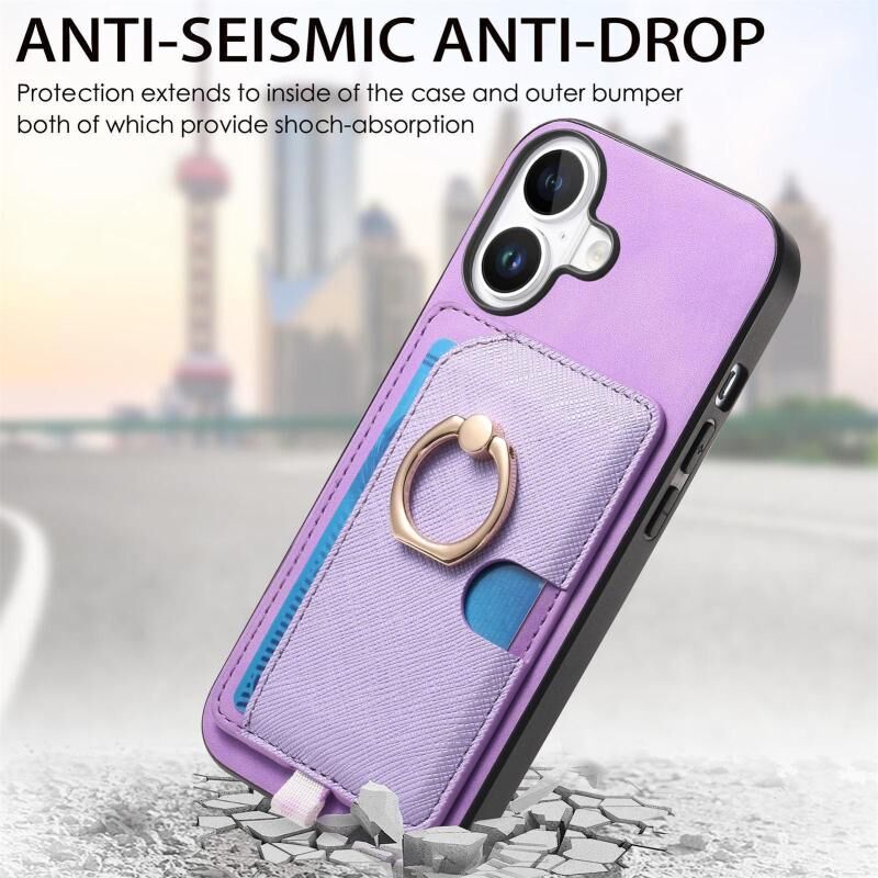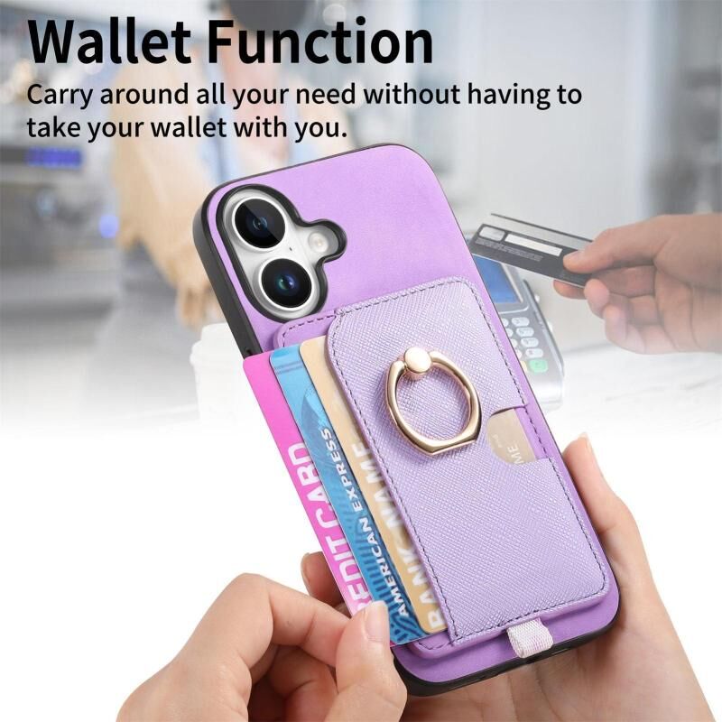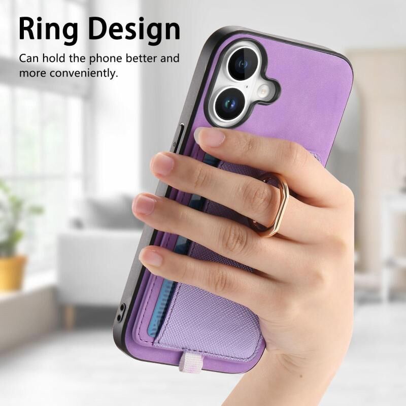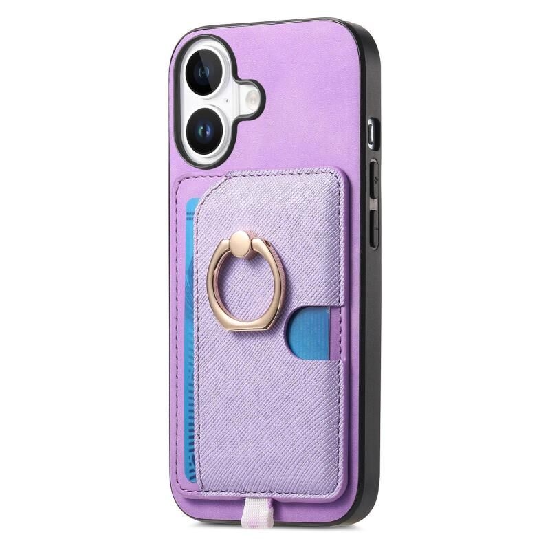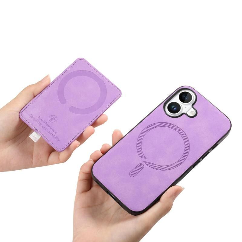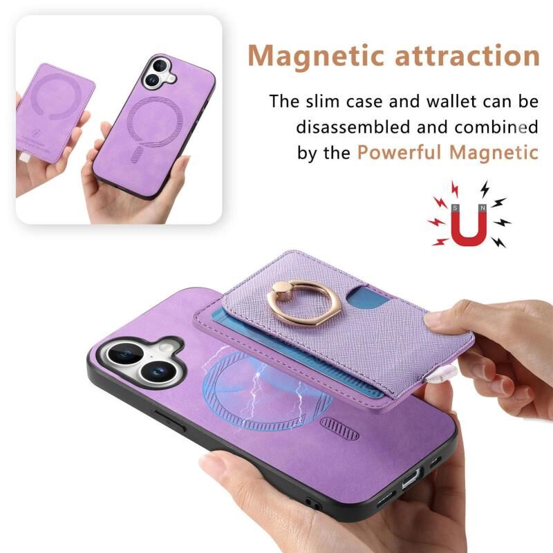 Θήκη τηλεφώνου MagSafe για iPhone 16 Plus, Ρετρό Δερμάτινη με Ενσωματωμένη Κάρτα και Δαχτυλίδι (Μωβ)