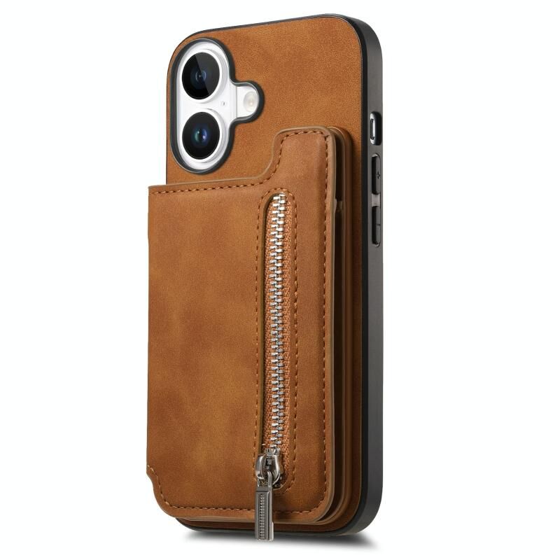 Θήκη κινητού τηλεφώνου για iPhone 16 Plus, Retro MagSafe, Πορτοφόλι με φερμουάρ και θήκη καρτών (Κίτρινο)