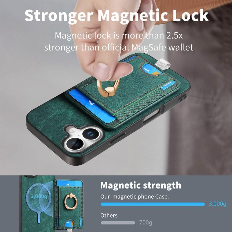 5. Το δερμάτινο πορτοφόλι διαθέτει ισχυρούς ενσωματωμένους μαγνήτες που του επιτρέπουν να κουμπώνει αβίαστα στη θέση του στο πίσω μέρος του τηλεφώνου σας, εύκολο στη χρήση και την αφαίρεση.