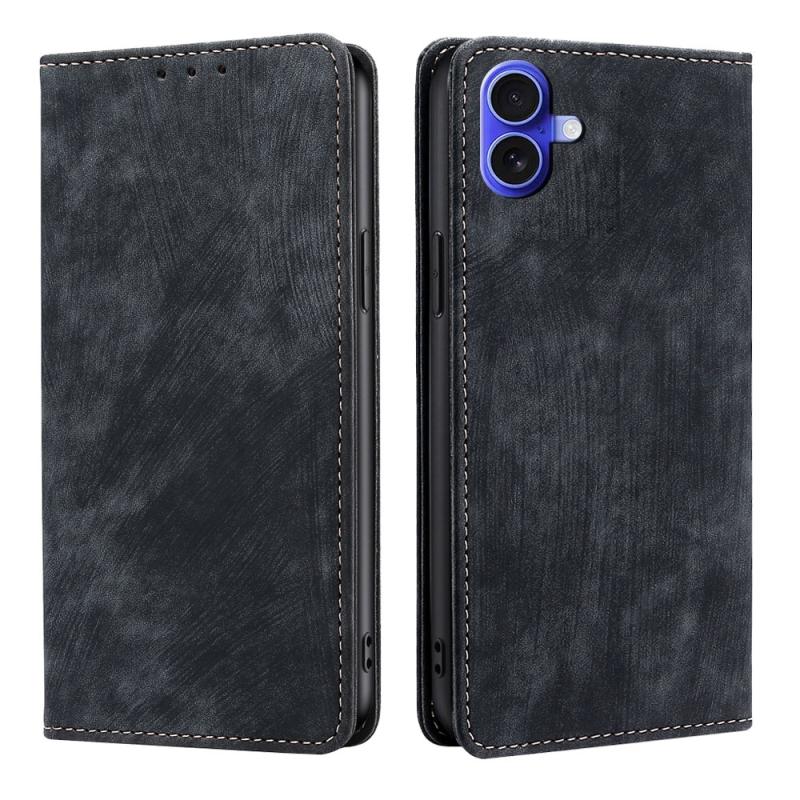 For iPhone 16 Plus RFID Anti-theft Brush Magnetic Leather Phone Case(Black)