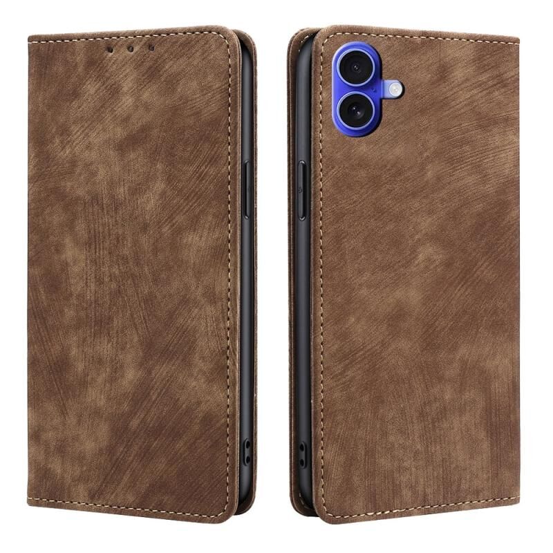For iPhone 16 Plus RFID Anti-theft Brush Magnetic Leather Phone Case(Brown)