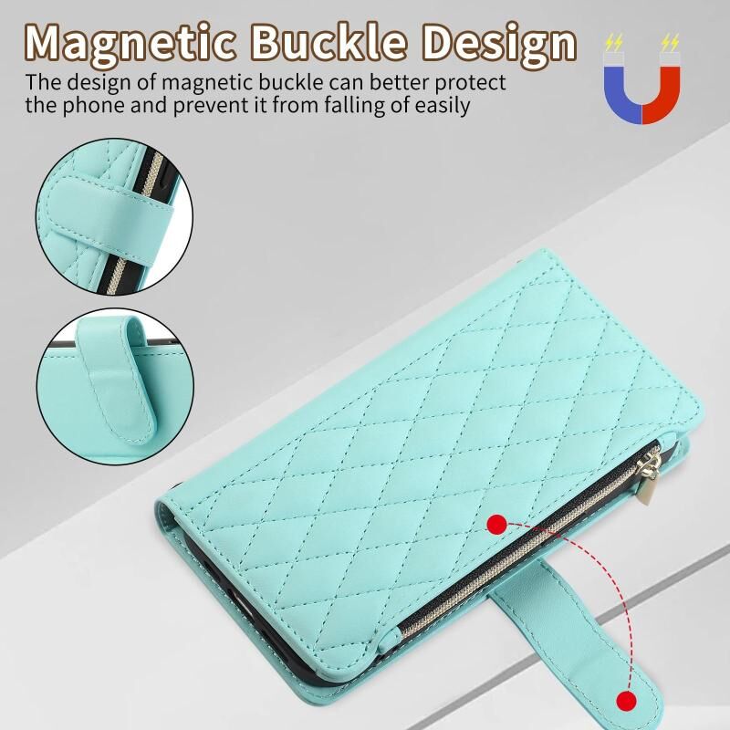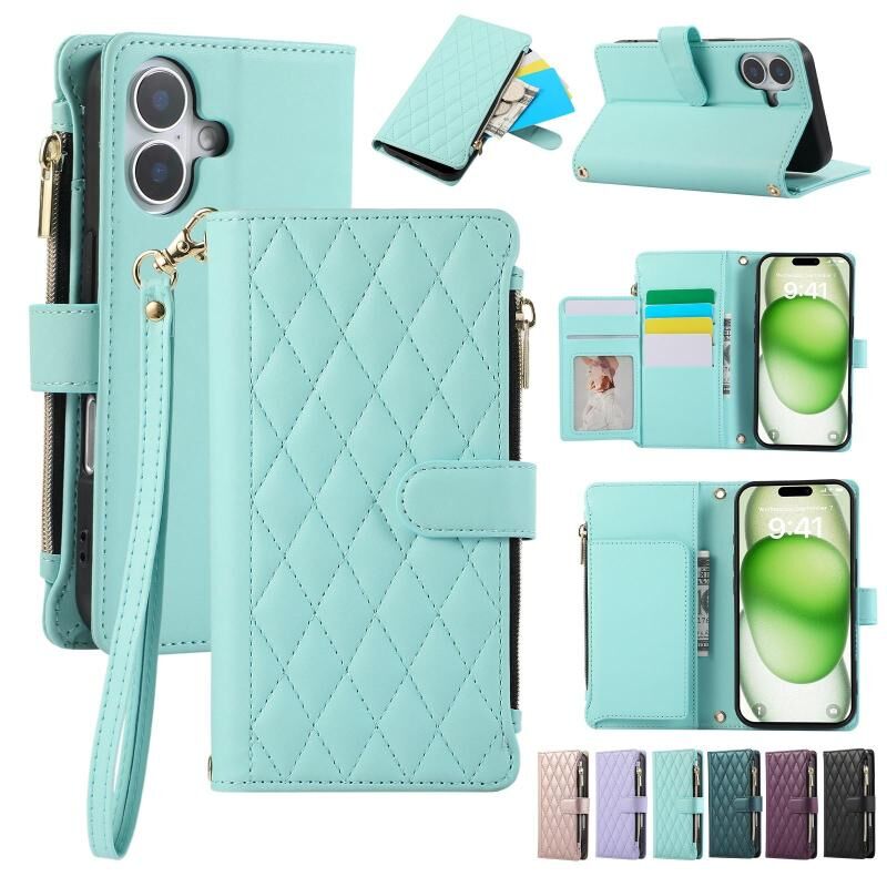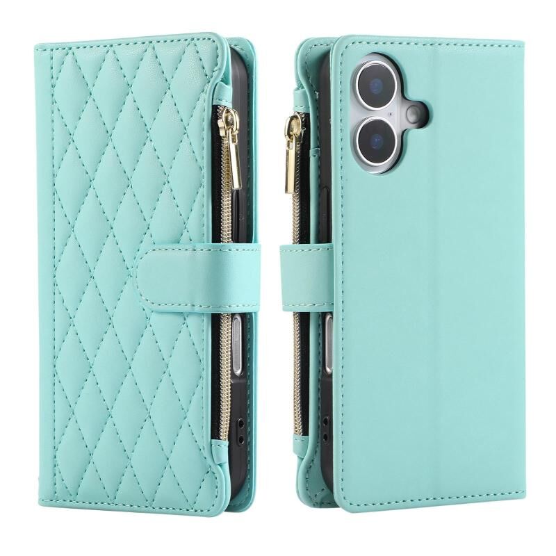 For iPhone 16 Plus Rhombic Zipper Wallet Leather Phone Case(Cyan)