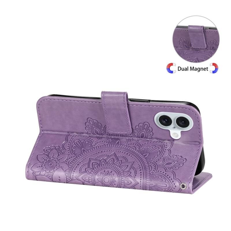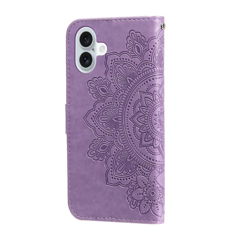 Θήκη τηλεφώνου από δέρμα με ανάγλυφα επτά πέταλα για iPhone 16 Plus (ανοιχτό μωβ)