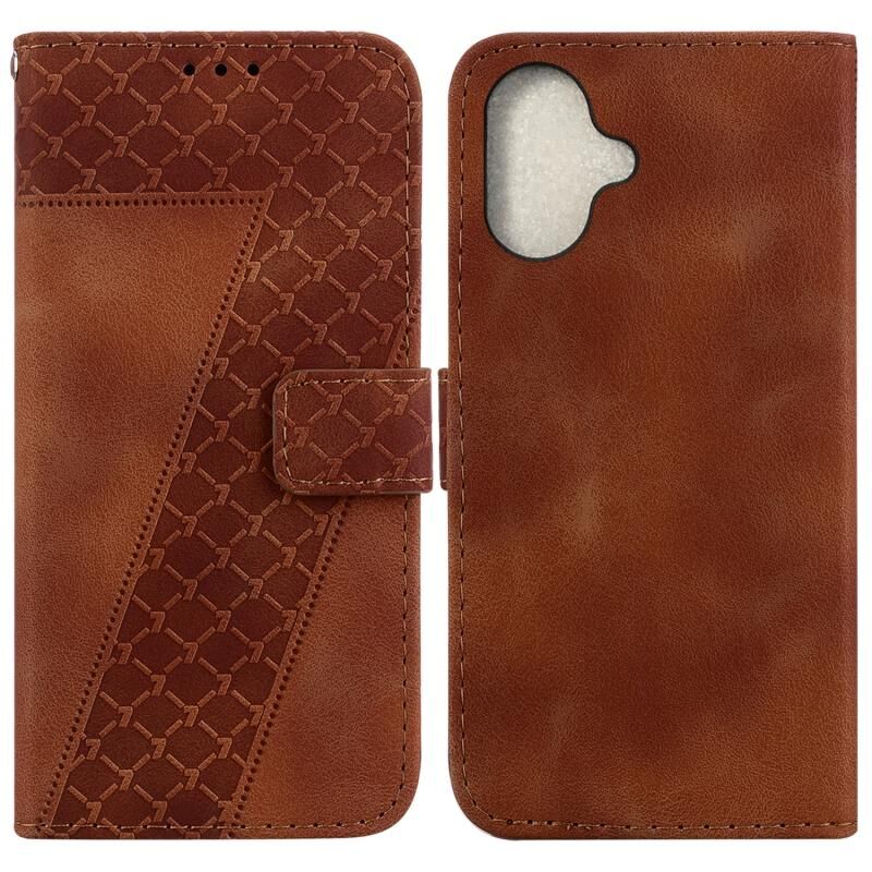 Θήκη τηλεφώνου από δέρμα με ανάγλυφο σχέδιο σε σχήμα επτά για iPhone 16 Plus (Πράσινο)