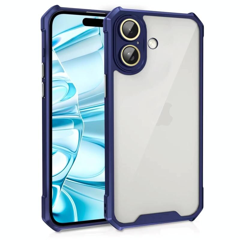 Θήκη κινητού τηλεφώνου για iPhone 16 Plus, ανθεκτική στις κρούσεις, από ακρυλικό υλικό με προστατευτική μεμβράνη φακού (Μπλε)