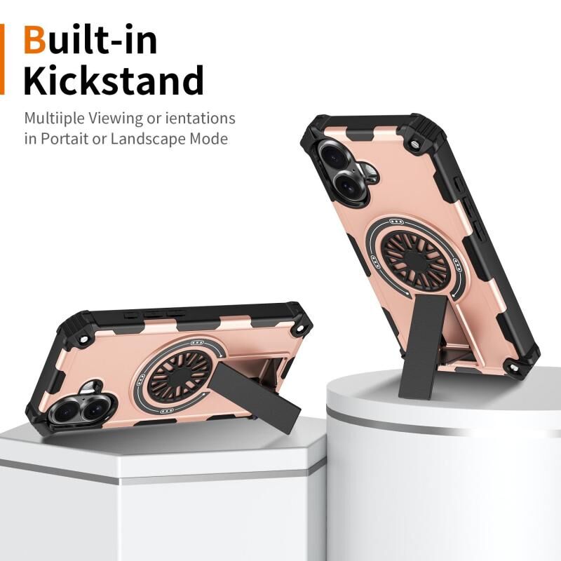 For iPhone 16 Plus Shockproof Kickstand Metallic Shaft MagSafe Phone Case(Rose Gold)