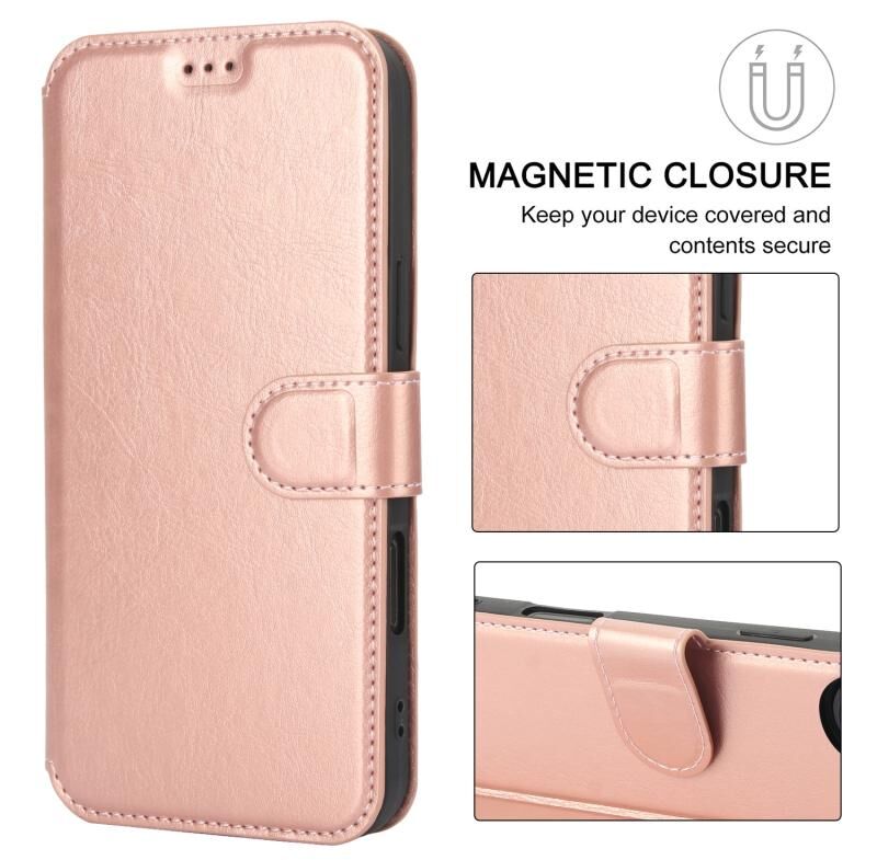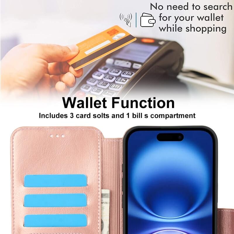 Θήκη κινητού τηλεφώνου για iPhone 16 Plus ανθεκτική στις κρούσεις, από δέρμα PU + TPU (Ροζ χρυσός)
