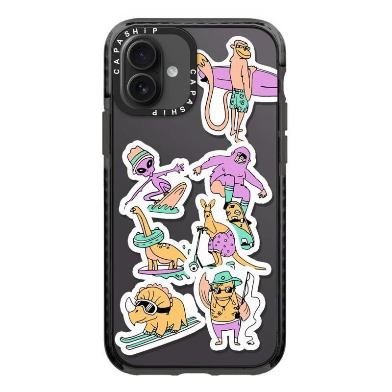 For iPhone 16 Plus Simple Illustration Pattern Full Coverage Phone Case(Summer Surfing C)