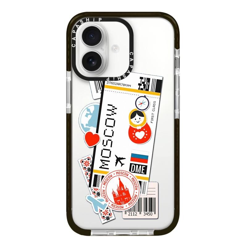 For iPhone 16 Plus Simple Illustration Pattern Full Coverage Phone Case(Travel Ticket B)