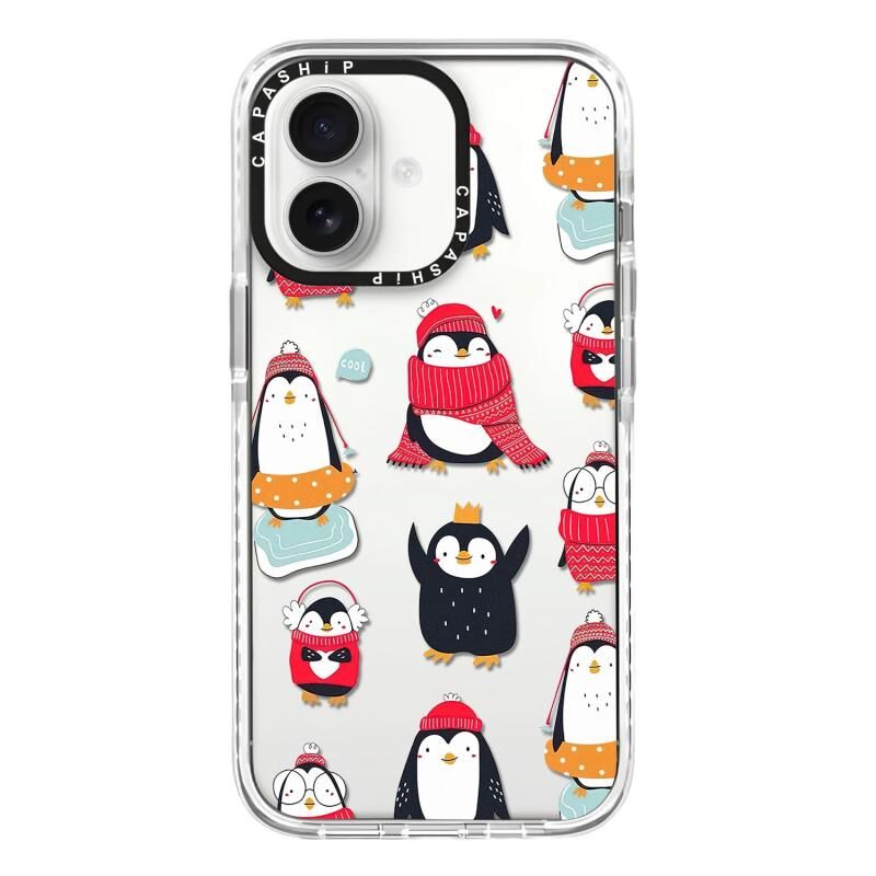 For iPhone 16 Plus Simple Illustration Pattern Full Coverage Phone Case(Winter Penguin)