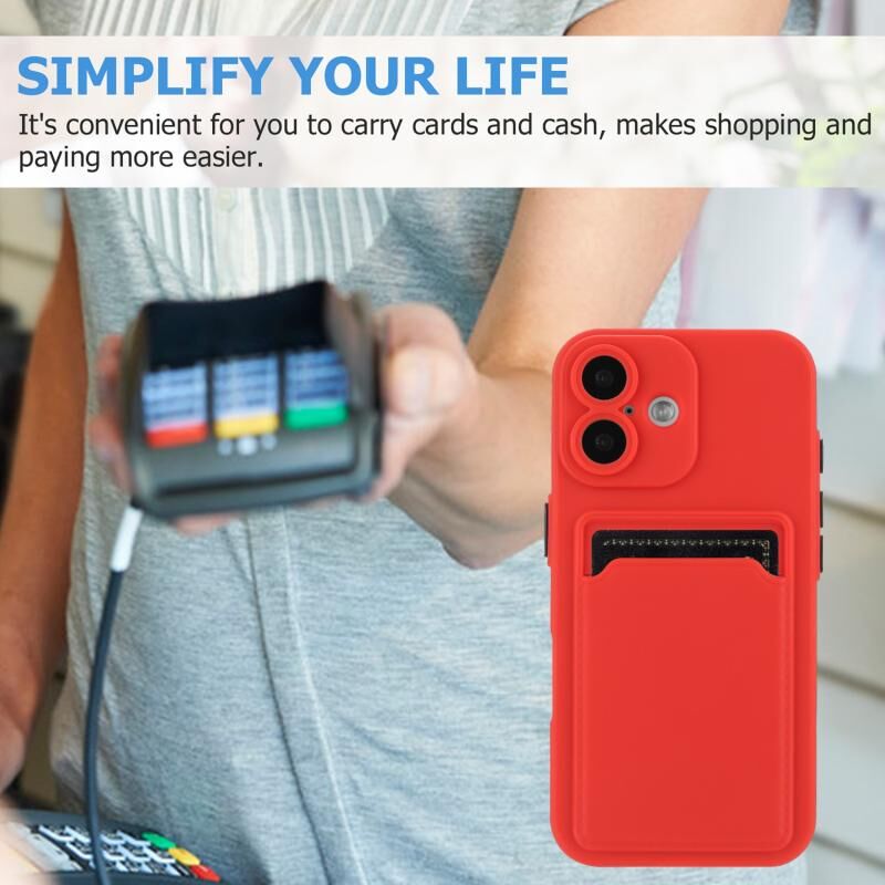Θήκη τηλεφώνου TPU για iPhone 16 Plus με αίσθηση δέρματος, αντίθεση χρωμάτων και κουμπιά (Κόκκινο)