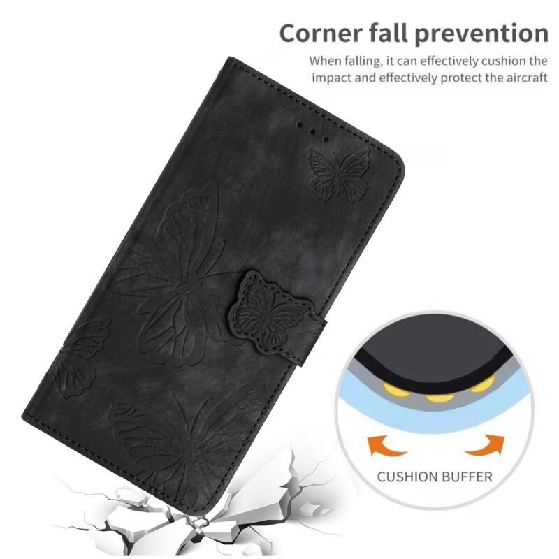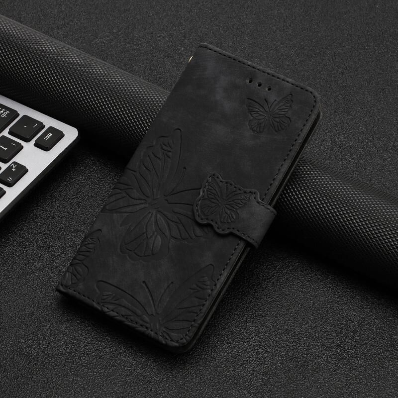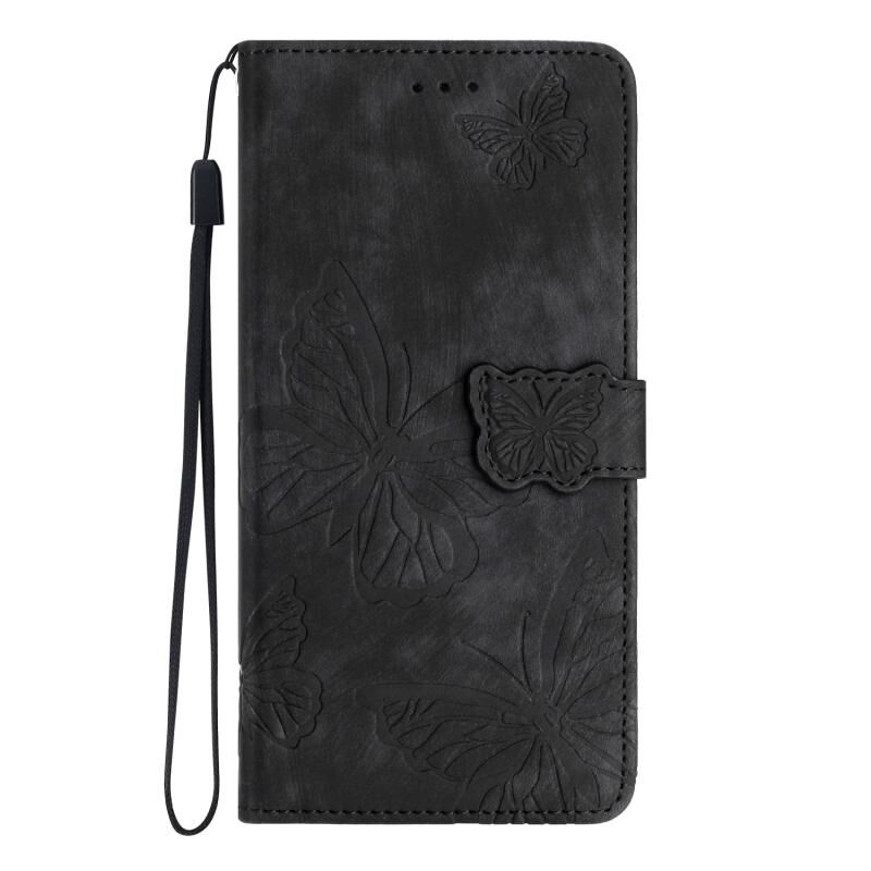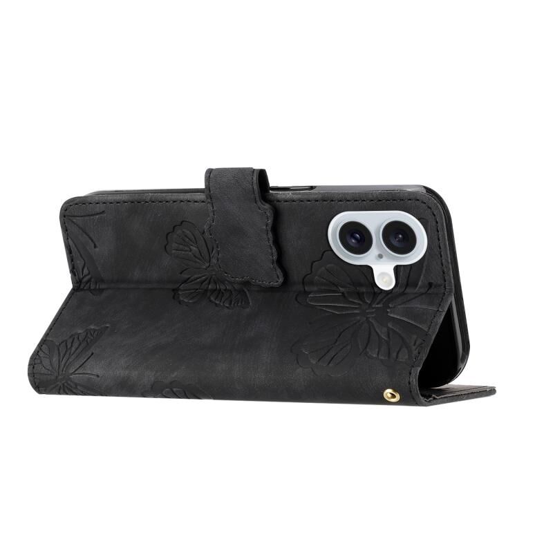 Θήκη τηλεφώνου από δέρμα με ανάγλυφα σχέδια πεταλούδας για iPhone 16 Plus (Μαύρο)