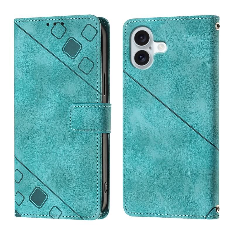 Θήκη τηλεφώνου από ανάγλυφο δέρμα με αίσθηση δέρματος για iPhone 16 Plus (πράσινο)