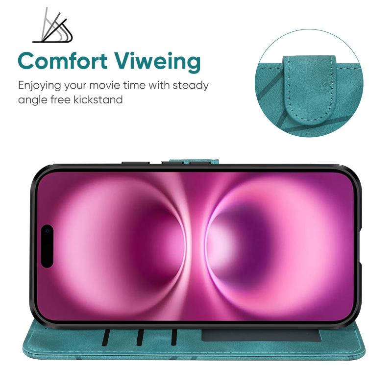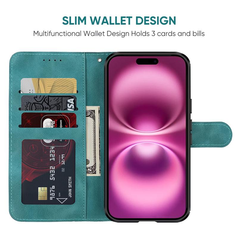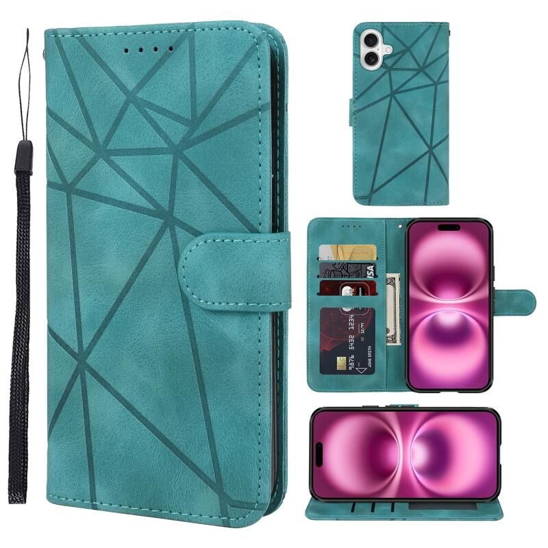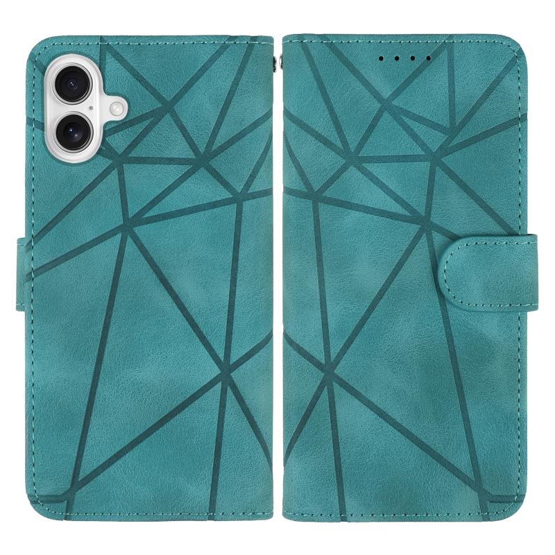 For iPhone 16 Plus Skin Feel Geometric Lines Leather Phone Case(Green)