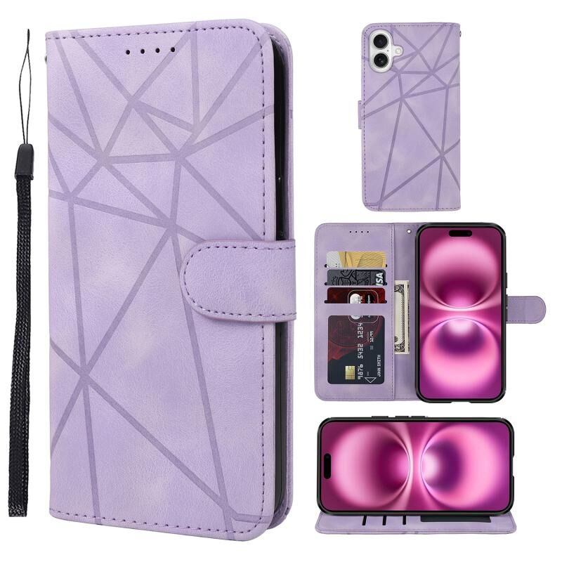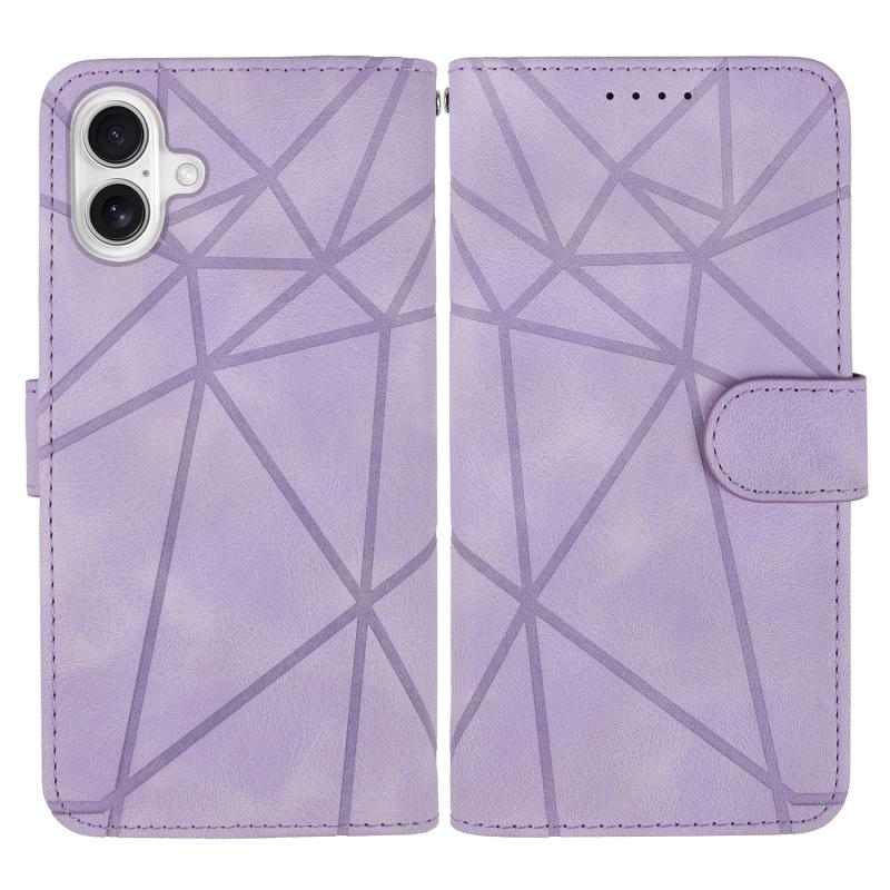 For iPhone 16 Plus Skin Feel Geometric Lines Leather Phone Case(Purple)