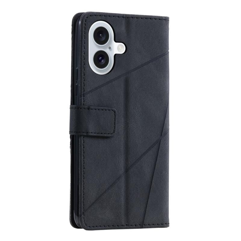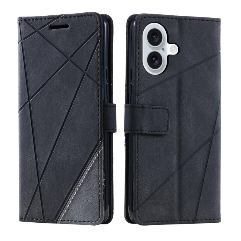 For iPhone 16 Plus Skin Feel Splicing Leather Phone Case(Black)