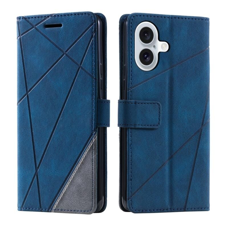 For iPhone 16 Plus Skin Feel Splicing Leather Phone Case(Blue)