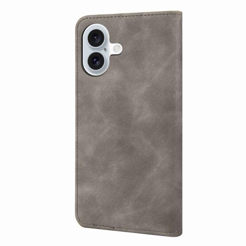 For iPhone 16 Plus Skin Feel Splicing Leather Phone Case(Grey)