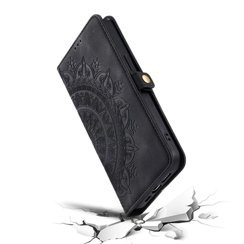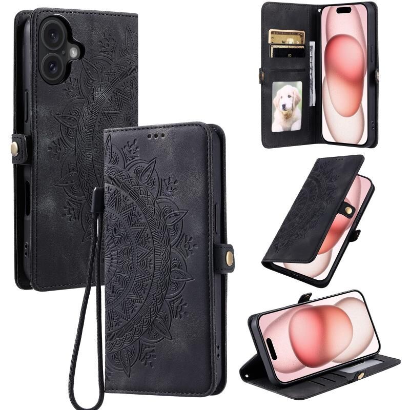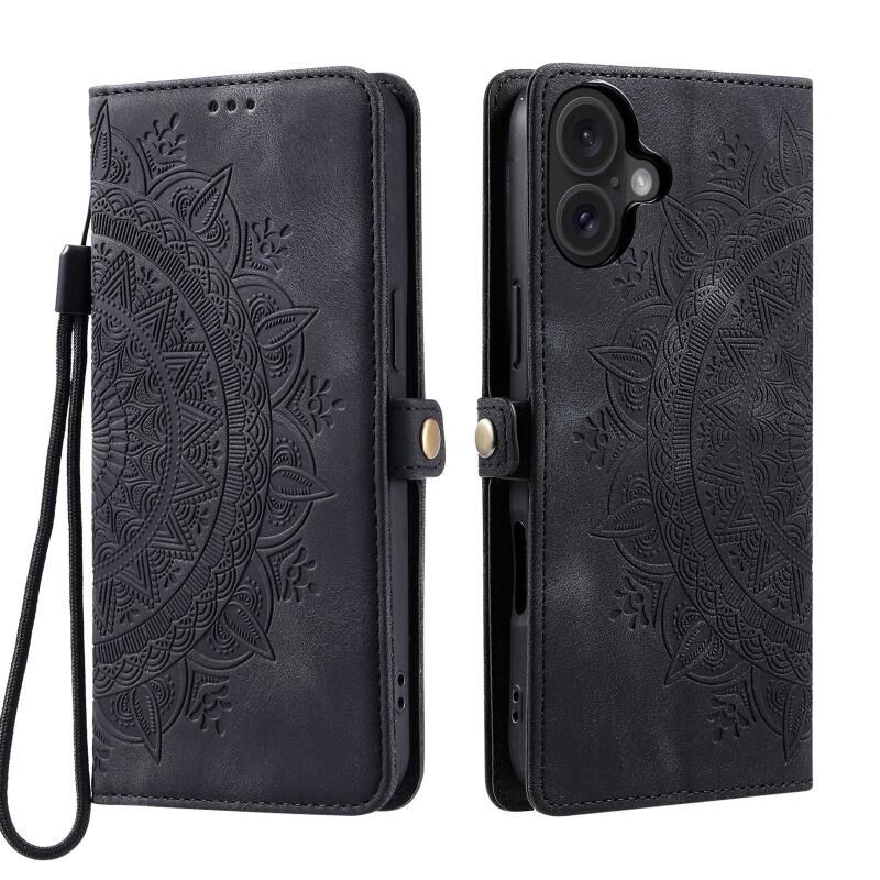 Θήκη τηλεφώνου από δέρμα με ανάγλυφο σχέδιο Totem για iPhone 16 Plus (Μαύρο)