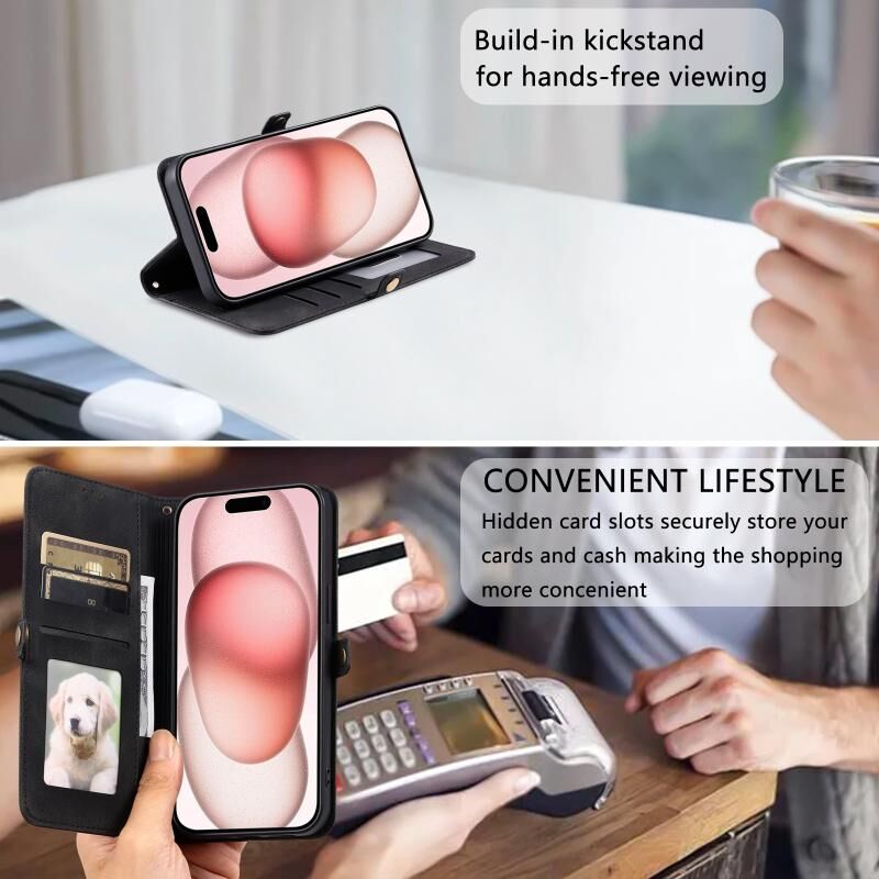 2. Λειτουργική Θήκη Καρτών: Περιλαμβάνει υποδοχές για κάρτες και θήκη για χρήματα για την αποθήκευση των πιστωτικών σας καρτών, μετρητών ή μικρών σημειώσεων.
