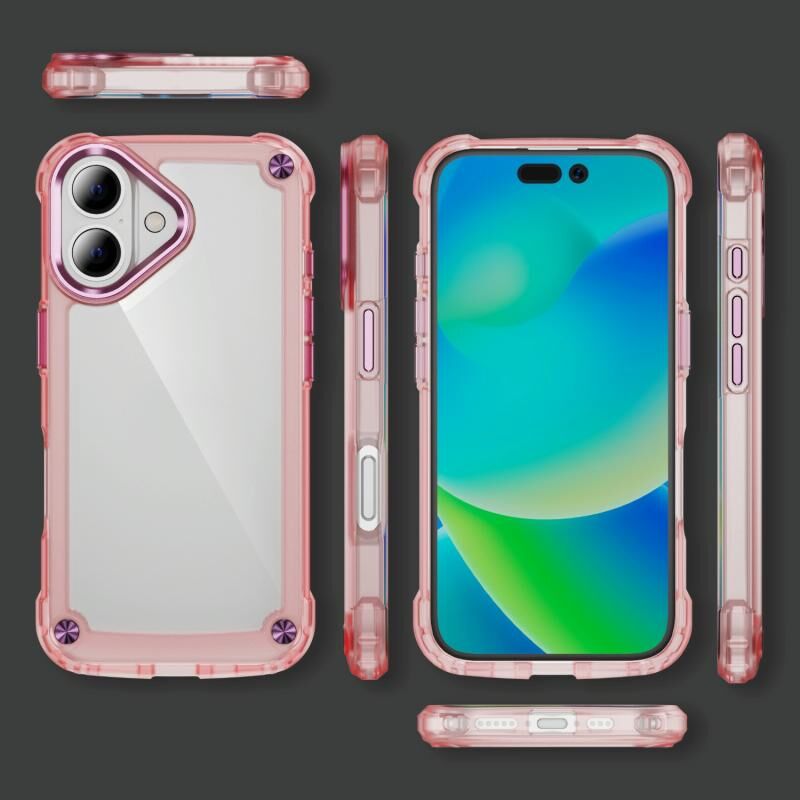 Θήκη τηλεφώνου για iPhone 16 Plus με αίσθηση δέρματος, κατασκευασμένη από TPU + PC (Διαφανές Ροζ)