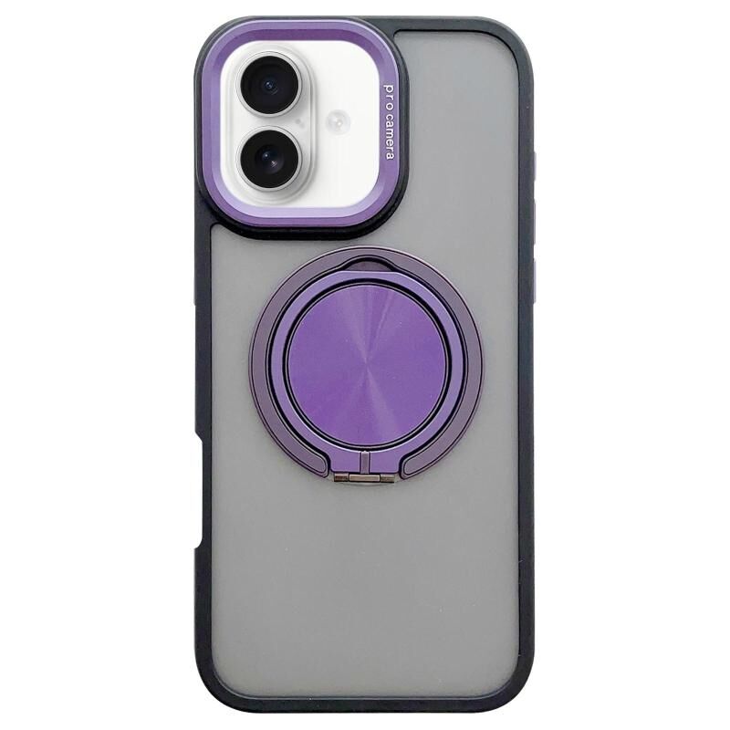 For iPhone 16 Plus Skin-feel Two-color Edge Strips 360 MagSafe Holder Phone Case(Purple)