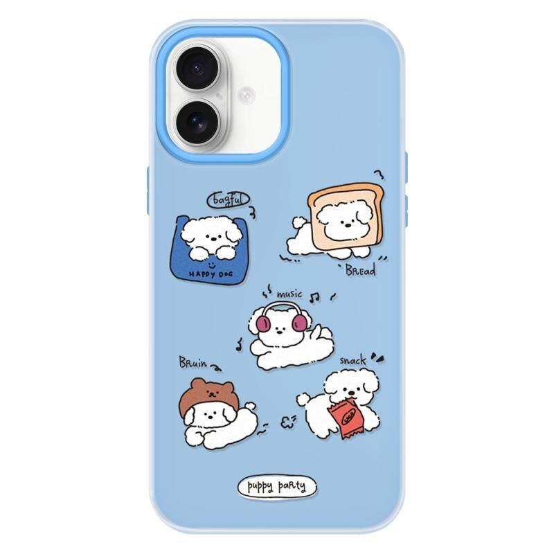 Θήκη τηλεφώνου υβριδική TPU/PC για iPhone 16 Plus με αίσθηση δέρματος (Puppy Party)