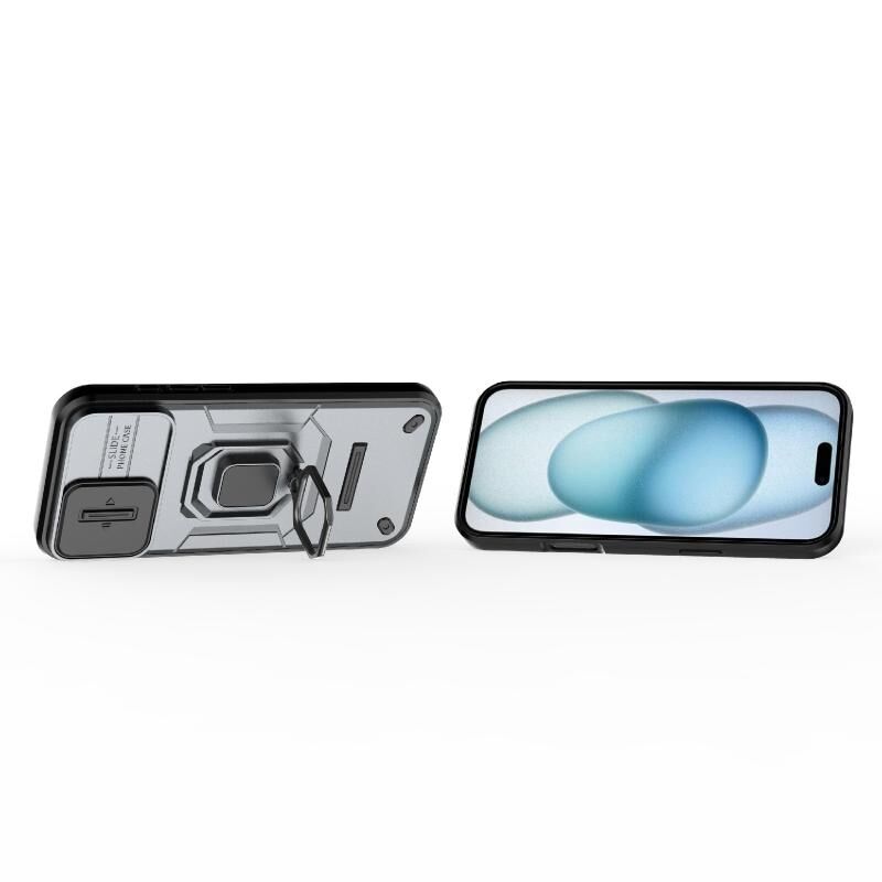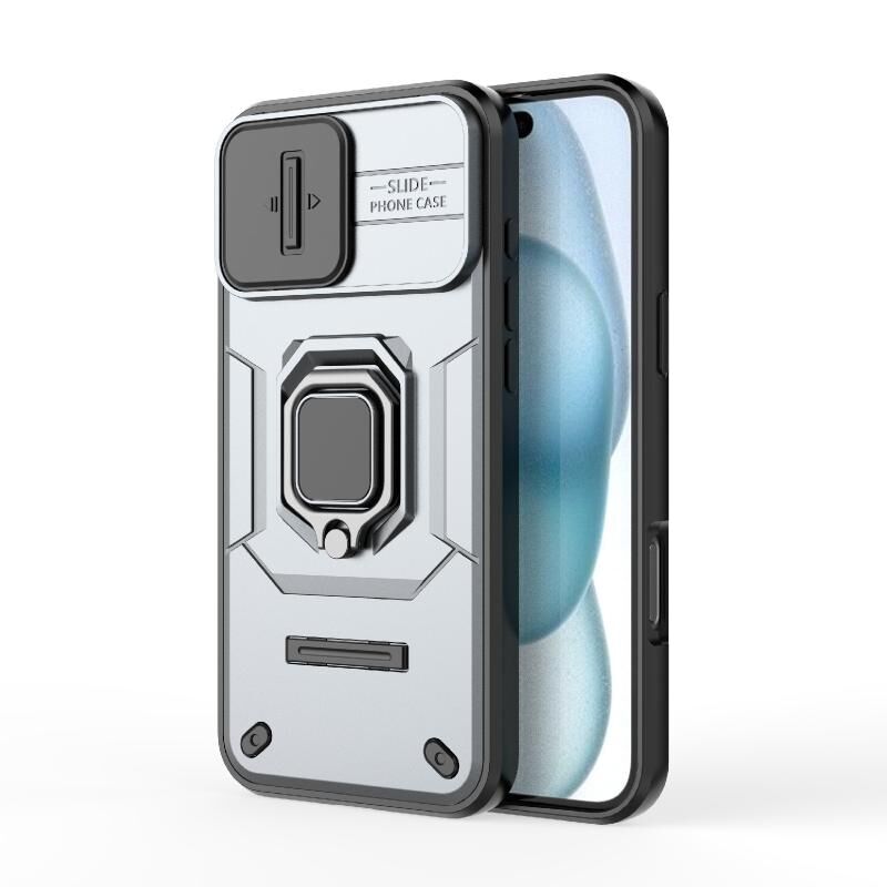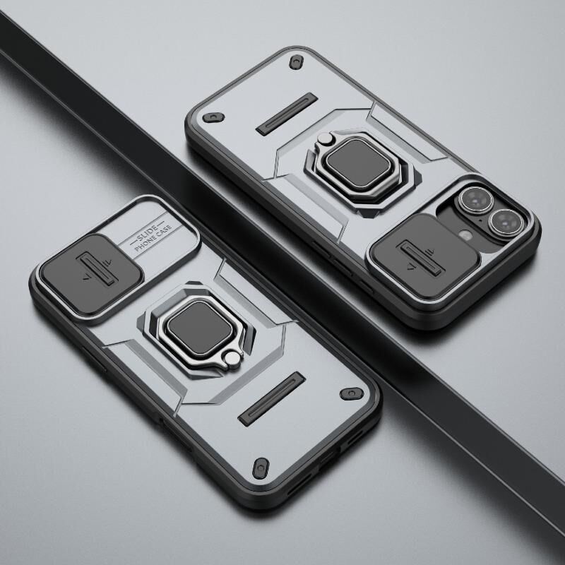 Θήκη τηλεφώνου για iPhone 16 Plus με ολισθαίνουσα προστασία κάμερας Camshield, κατασκευασμένη από TPU + PC, ανθεκτική σε κρούσεις, με βάση στήριξης (Γκρι)