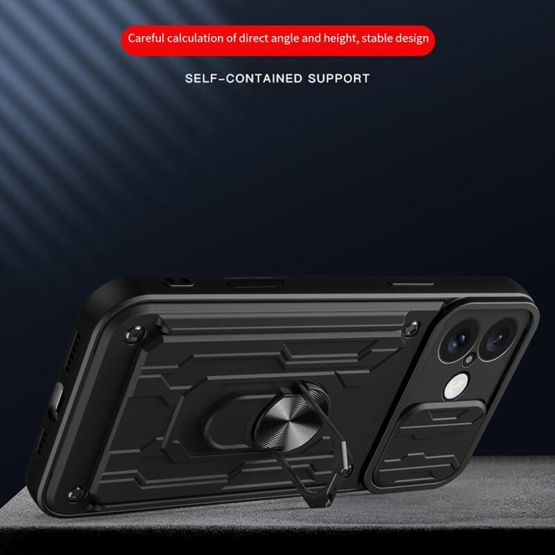 Θήκη τηλεφώνου για iPhone 16 Plus με συρόμενο προστατευτικό κάμερας, κατασκευασμένη από TPU+PC με θήκη για κάρτες (Μπλε)
