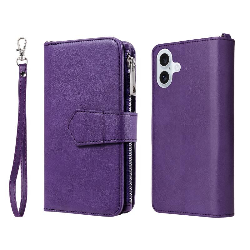Θήκη κινητού τηλεφώνου 2 σε 1 με φερμουάρ, ανθεκτική στις κρούσεις, για iPhone 16 Plus, μονόχρωμη (Μαύρο)