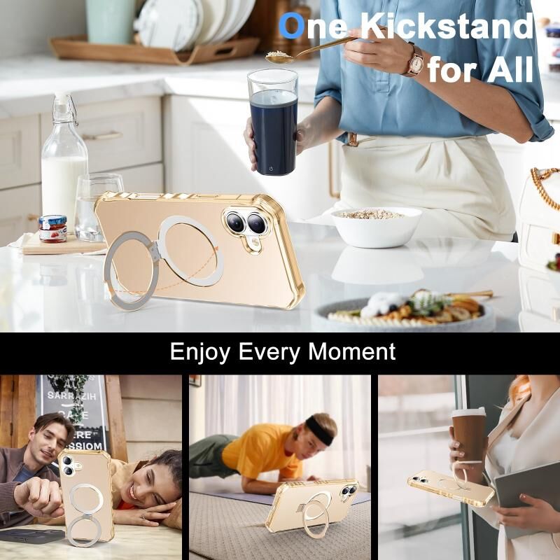 For iPhone 16 Plus Solid Color Wave MagSafe Holder Phone Case(Gold)