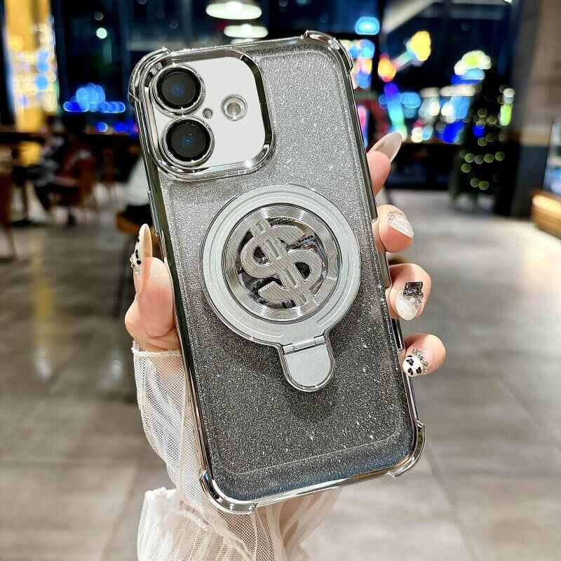 For iPhone 16 Plus Space Gradient Glitter MagSafe Holder Phone Case with Lens Film(Silver)