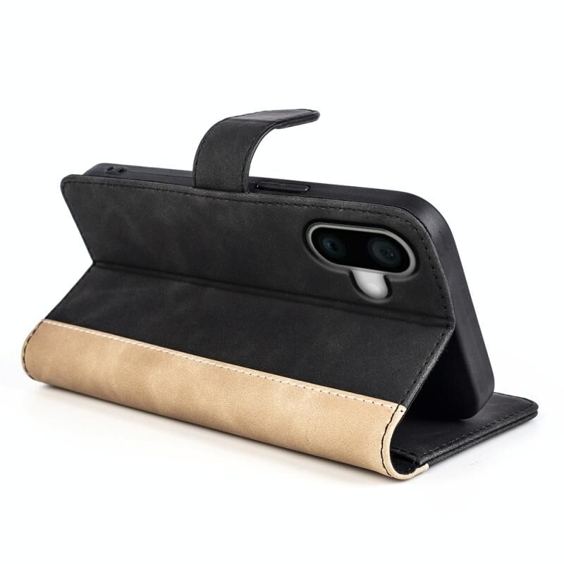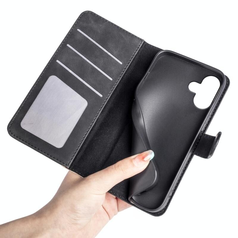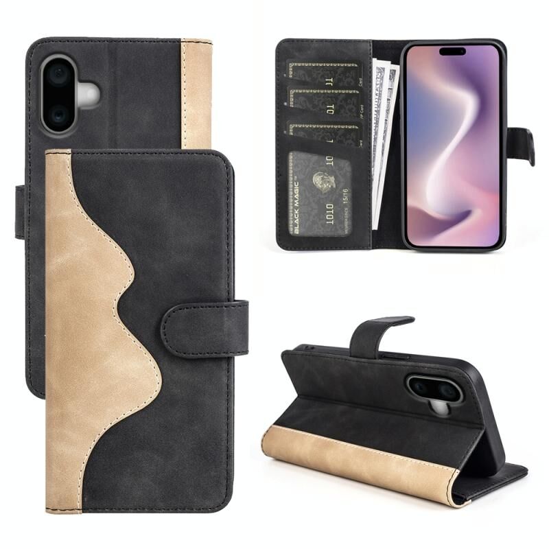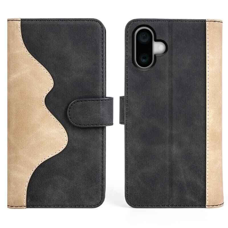 Για το iPhone 16 Plus ραφή οριζόντια Flip δερμάτινη θήκη τηλεφώνου (Μαύρο)
