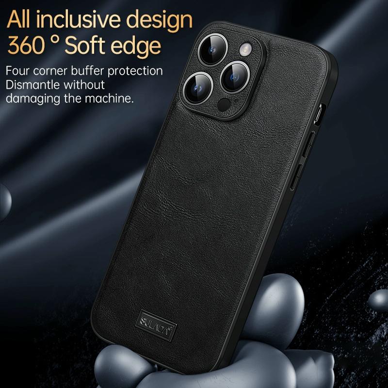 For iPhone 16 Plus SULADA Shockproof TPU Hybrid Handmade Leather Phone Case(Brown) (SULADA)