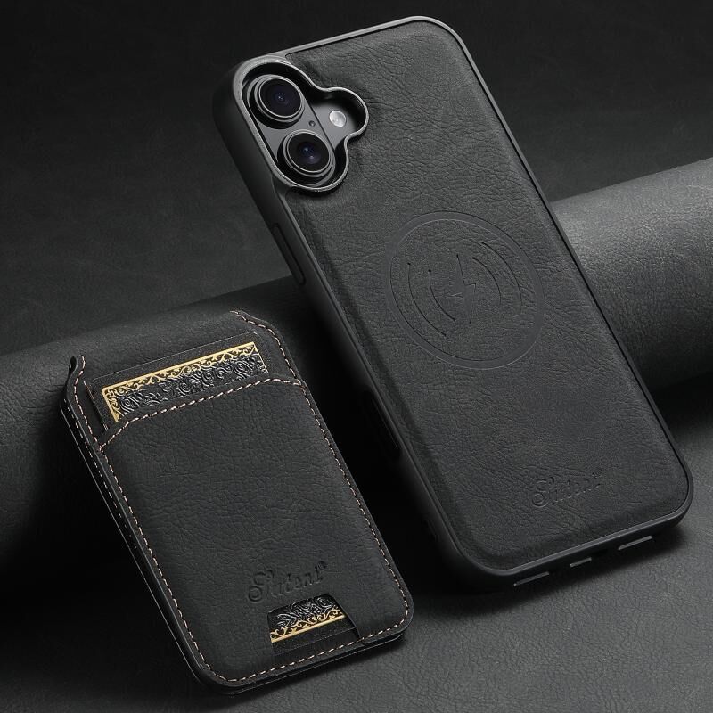 For iPhone 16 Plus Suteni H16 Litchi Texture Leather Detachable Wallet Back Phone Case(Black) (Suteni)