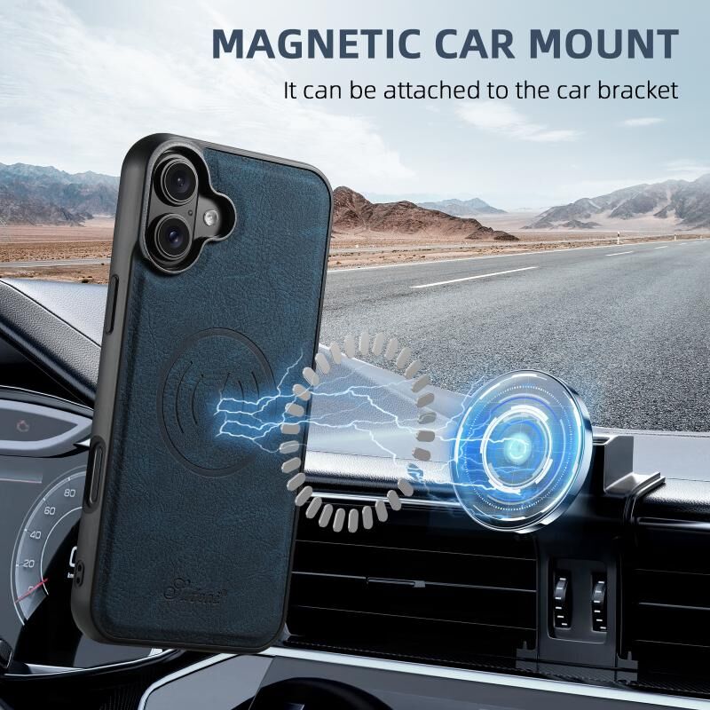 For iPhone 16 Plus Suteni H17 Litchi Texture Leather MagSafe Detachable Wallet Phone Case(Blue) (Suteni)