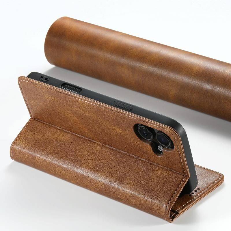 Θήκη τηλεφώνου από δέρμα με κερί λαδιού Suteni J02 για iPhone 16 Plus (Καφέ) (Suteni)