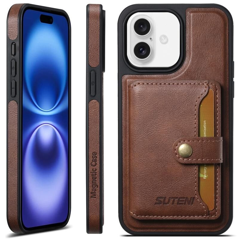 Θήκη τηλεφώνου για iPhone 16 Plus Suteni M1 Oil Wax MagSafe αποσπώμενη οριζόντια θήκη καρτών (Καφέ) (Suteni)