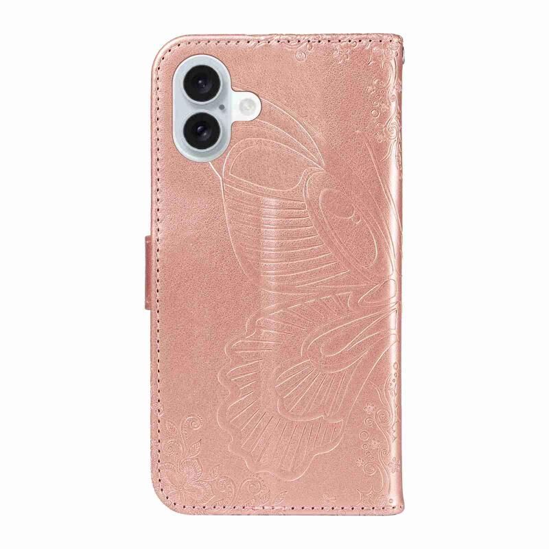 Θήκη τηλεφώνου από δέρμα με ανάγλυφο σχέδιο πεταλούδας Swallowtail για iPhone 16 Plus (Μπλε)