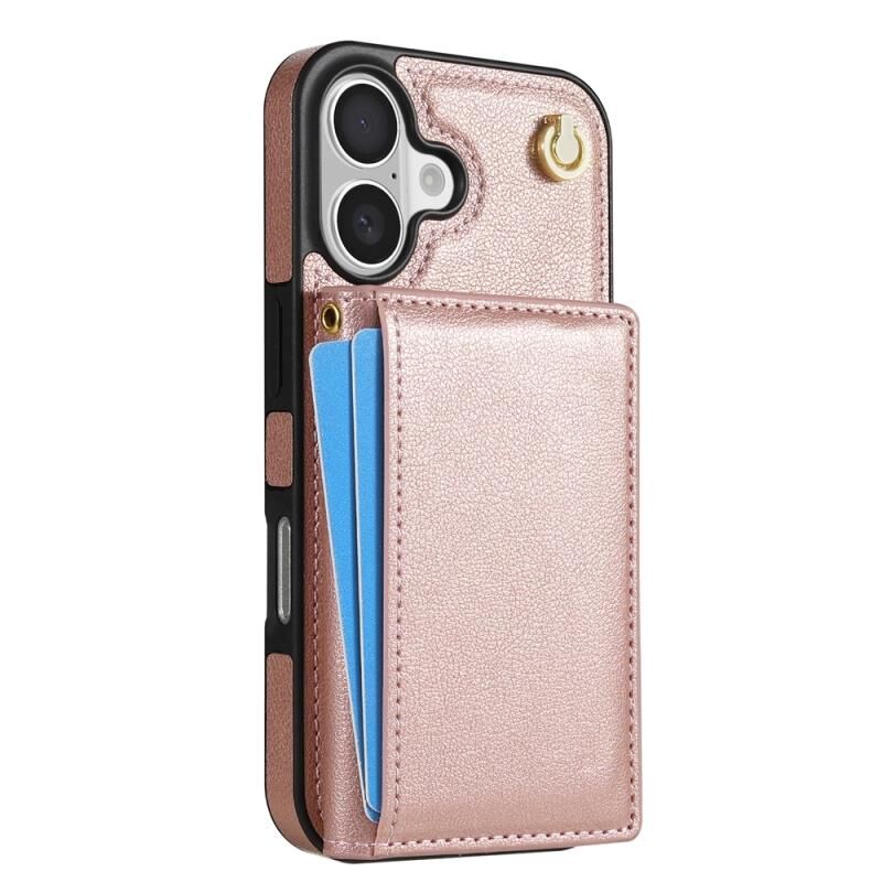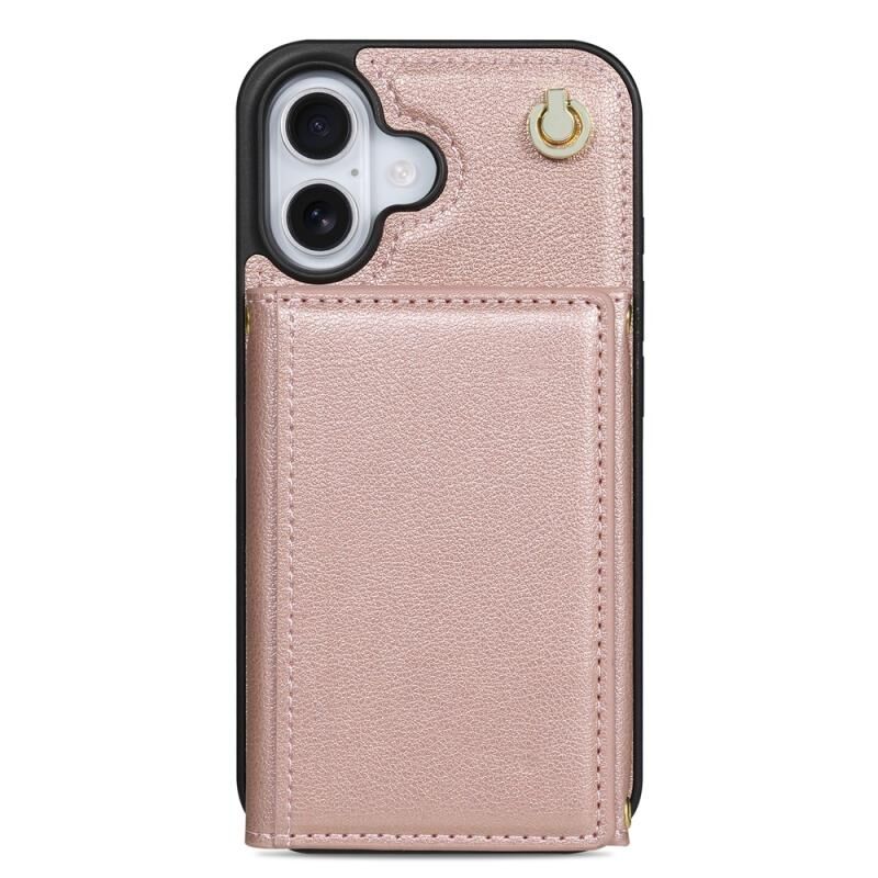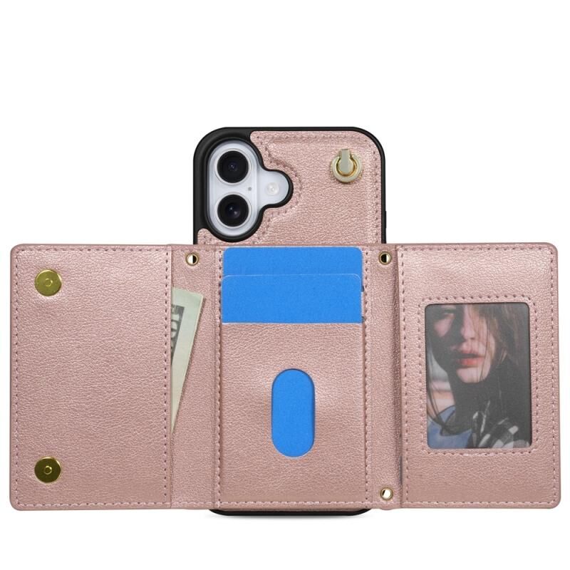 Θήκη τηλεφώνου για iPhone 16 Plus με τριπλή θήκη καρτών και μακρύ κορδόνι (Μαύρο)