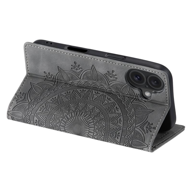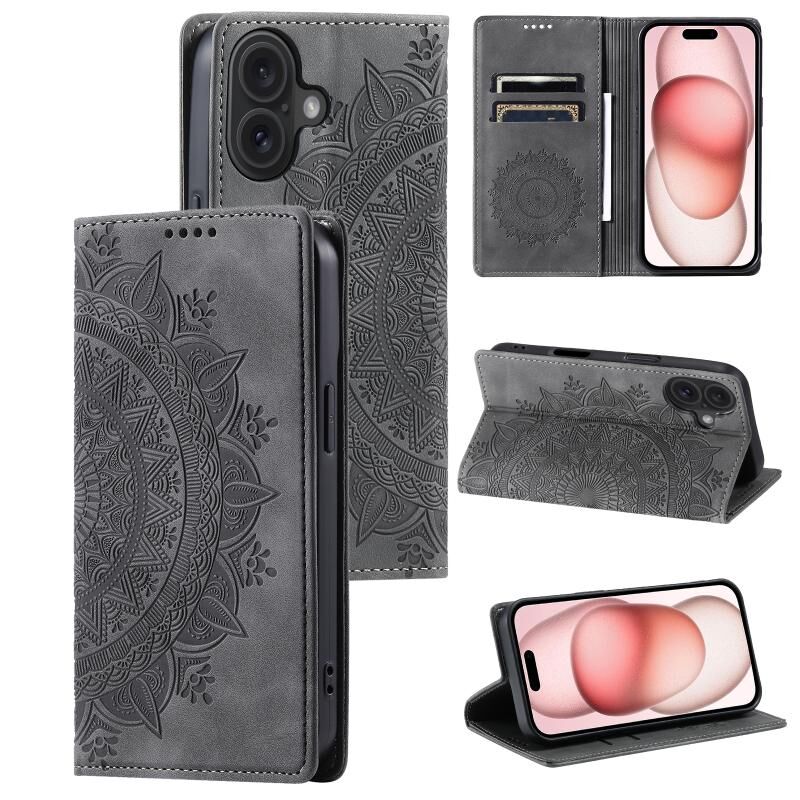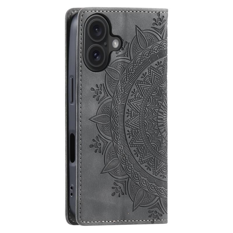 For iPhone 16 Plus Totem Embossed Magnetic Leather Phone Case(Grey)
