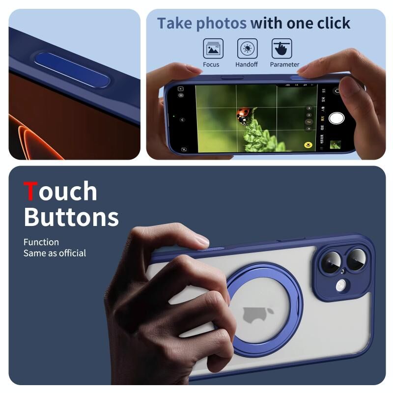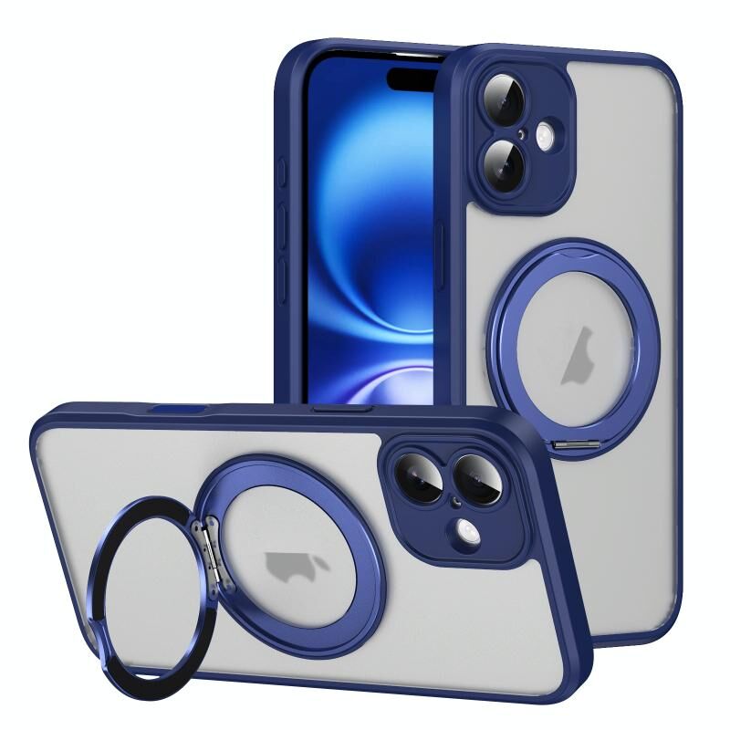Θήκη τηλεφώνου με περιστρεφόμενη βάση MagSafe, ημιδιαφανές ματ φινίρισμα για iPhone 16 Plus με κουμπί AI (Μπλε)