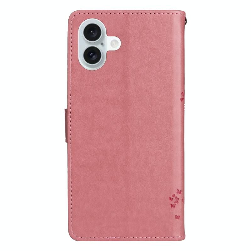 For iPhone 16 Plus Tree & Cat Embossed Pattern Flip Leather Phone Case(Pink)