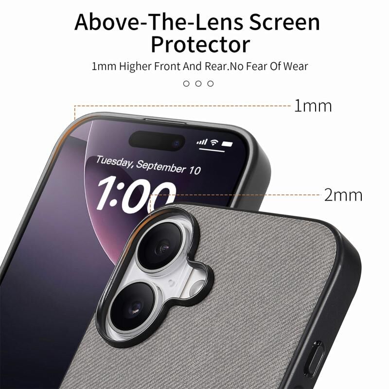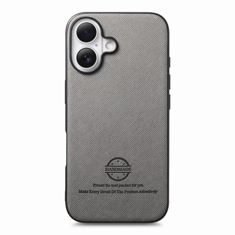 For iPhone 16 Plus Twill Fabric Leather Skin Back Phone Case(Gray)